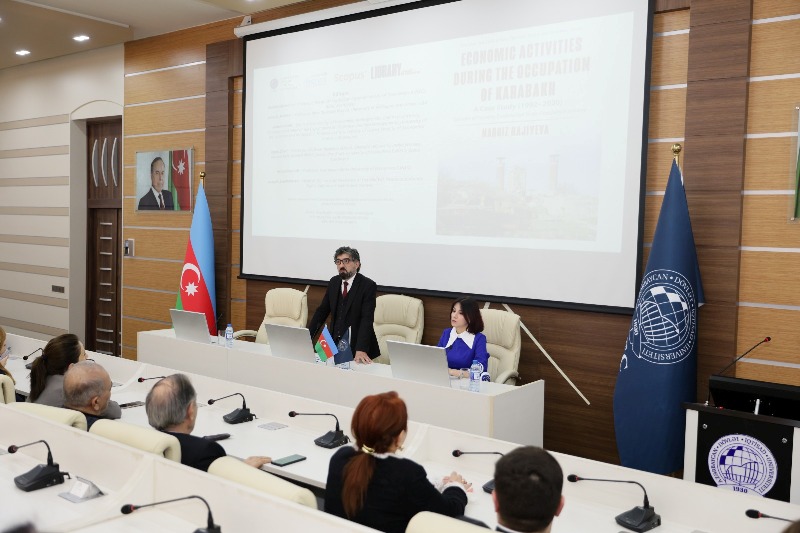 Aprelin 1-də start verilən “Elm Günləri” çərçivəsində növbəti tədbir kitab təqdimatı ilə davam edib. UNEC-də Elmi fəaliyyətin təşkili şöbəsinin müdiri, i.ü.f.d, UNEC Xanım Tədqiqatçılar Şurasının rəhbəri Nərgiz Hacıyevanın “Economic Activities During the Occupation of Karabakh: A Case Study (1992–2020) of Decades of Property Exploitation in an Occupied Economy” adlı monoqrafiyasının təqdimatı keçirilib.