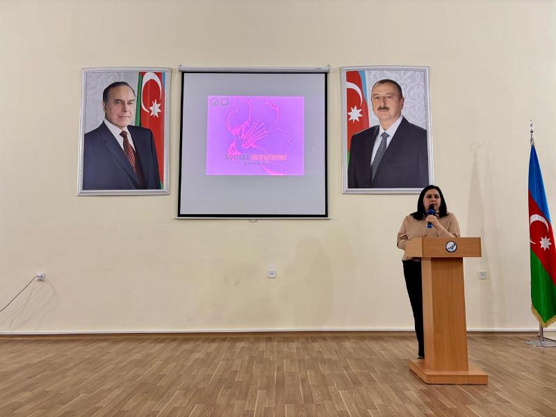 Kollecin tarix müəllimi Turanə Hüseynov Xocalı soyqırımı haqqında geniş məruzə ilə çıxış edərək, Xocalıda törədilmiş amansız qətliam təkcə türk dünyasına deyil, bütövlükdə bəşəriyyətin mütərəqqi dəyərlərinə, insanlığa və beynəlxalq hüquq normalarına qarşı yönəlmiş soyqırım aktı olduğunu bildirib.