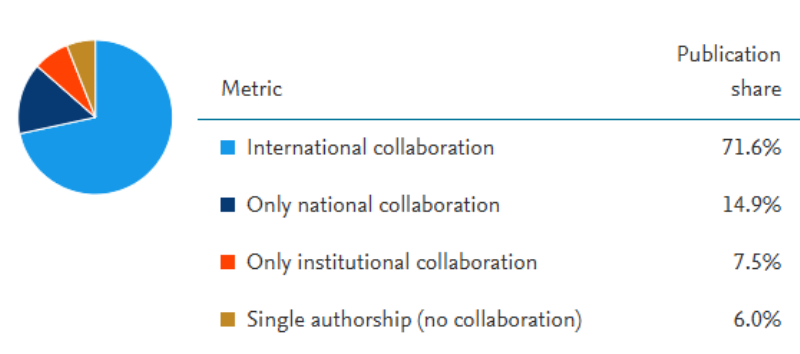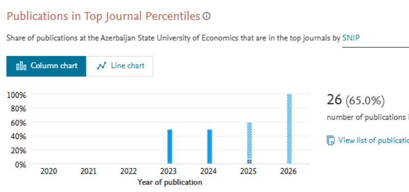 Süni intellekt üzrə UNEC nəşrlərinə Scopusda ümumi baxış sayı 2718, hər nəşrə düşən baxış sayı isə 40.6 təşkil edir. Dünyada ən çox baxılan nəşrlər arasında UNEC nəşrlərinin payı 40 (59.7%) təşkil edir. Jurnalların kvartillərinə gəldikdə Süni intellekt barədə yazılmış məqalələrin 50 faizi (31 nəşr) Q1/Q2 kvartilli jurnallarda dərc edilib. Mövzu üzrə UNEC-dən 45 müəllifin məqaləsi dərc edilib və top 10 müəllif bunlardır: Pamucar Dragan Stevan S., Dinçer Hasan, Yüksel Serhat, Moslem Sarbast, Vüsal Kərimli, Yadulla Həsənli, Ülviyyə Rzayeva, Rəna Mikayılova, Əli Abbasov, Şahnaz Şahbazova. 2020-2026-cı illər ərzində UNEC-in araşdırılan sahə üzrə beynəlxalq əməkdaşlığı 71.6% (234 sitat), milli əməkdaşlıq 14.9% (51 sitat), institusional əməkdaşlıq isə 7.5% (1 sitat) təşkil edir.
