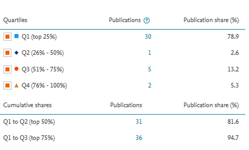 Dünyada Süni intellekt üzrə ən çox istinad edilən nəşrlər arasında UNEC nəşrlərinin payı 12-dir (17.9%). Tədqiq etdiyimiz mövzu üzrə top 10 jurnallarda (SNIP) yer alan elmi nəşrlərin payı 26 (65.0%), SCIMago Journal Rank (SJR) üzrə isə 7(18.4%) təşkil edir. İsnad sayına görə ən yaxşı 3 məqalə aşağıdakılardır: