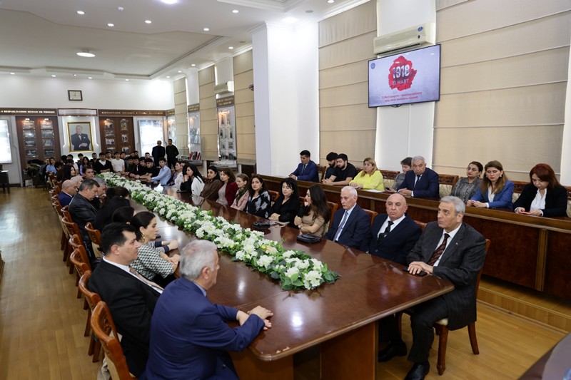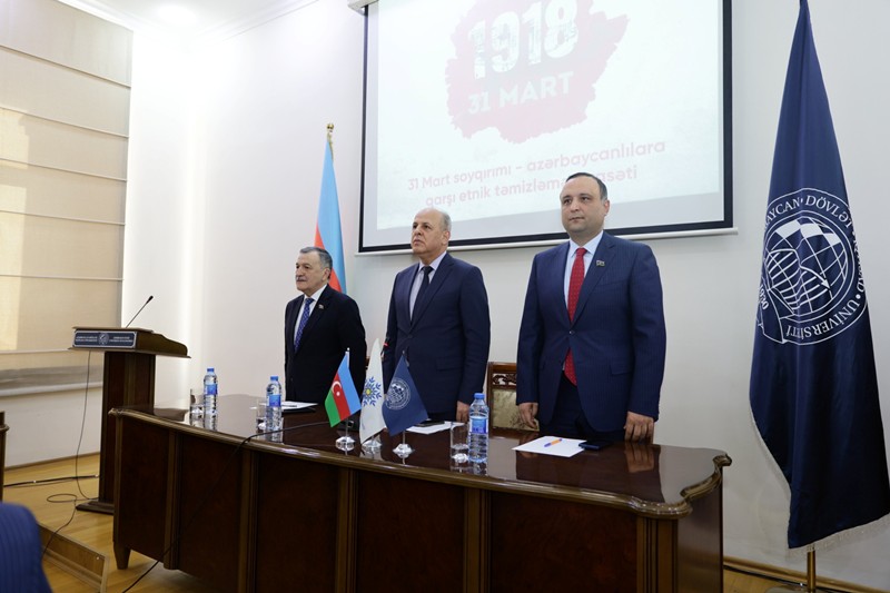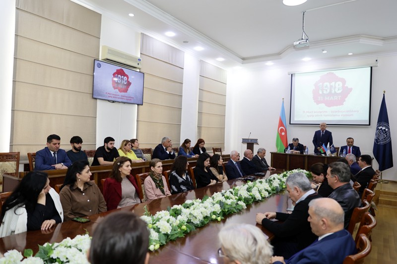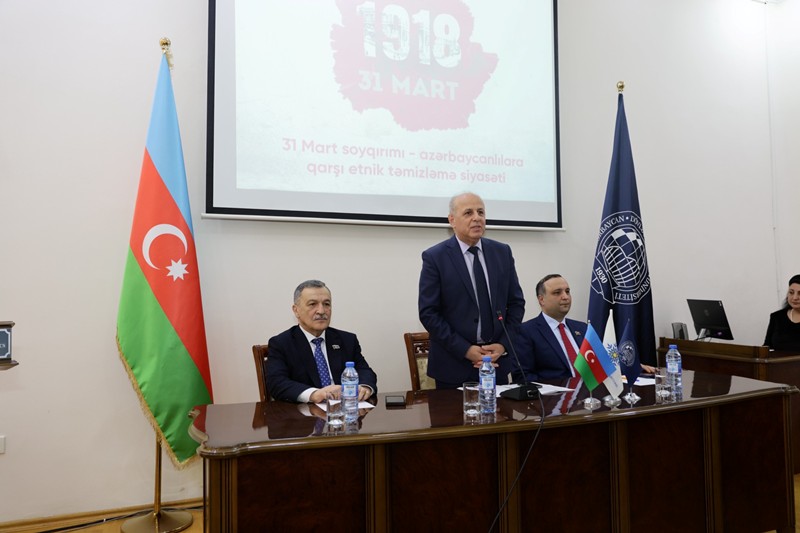 “İstiqlaliyyət 6” ünvanı üzrə ərazi partiya təşkilatının sədri, inzibati və təşkilati məsələlər üzrə prorektor, dosent Şaiq Əsgərov tədbirin açılışında çıxış edərək bildirib ki, 31 mart soyqırımı Azərbaycan xalqına qarşı həyata keçirilmiş etnik təmizləmə və soyqırımı siyasətinin ən qanlı səhifələrindən biridir. Faciənin coğrafiyası və miqyasına toxunan prorektor qeyd edib ki, 1918-ci ilin mart-aprel aylarında erməni silahlı dəstələri tərəfindən Bakı, Şamaxı, Quba, Qarabağ, Zəngəzur və digər bölgələrdə minlərlə günahsız azərbaycanlı məhz milli mənsubiyyətinə görə xüsusi qəddarlıqla qətlə yetirilib. Bu vəhşiliklər zamanı təkcə insanlar hədəf alınmayıb, həmçinin kəndlər yandırılıb, xalqımızın minillik tarixi və dini abidələri yerlə-yeksan edilib.