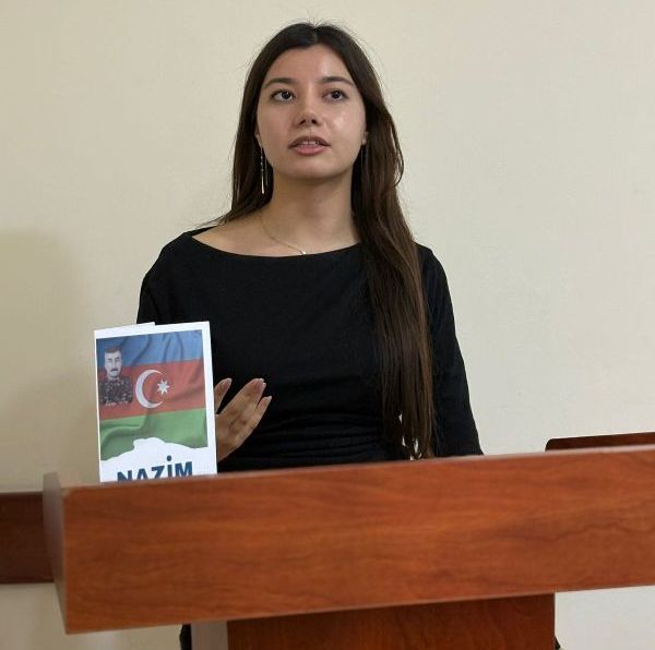 Açılış nitqi ilə çıxış edən dosent Pikəxanım Xudiyeva Nazim Cəbrayılovun şərəfli həyat yolu və döyüş şücaəti haqqında iştirakçılara ətraflı məlumat verib.