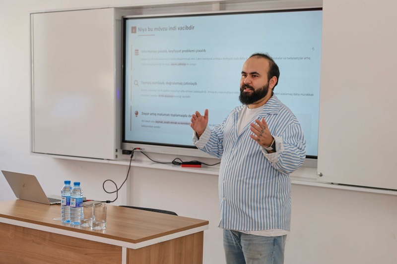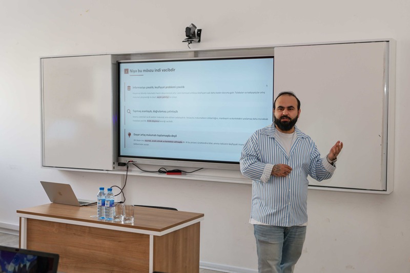 Təlim generativ süni intellekt və yaradıcı texnologiyalar üzrə mütəxəssis Ümid Salay tərəfindən aparılıb. Təlim zamanı iştirakçılara süni intellekt texnologiyalarının müasir imkanları, generativ süni intellekt alətlərinin funksiyaları və onların kitabxana-informasiya xidmətlərində, elmi tədqiqat prosesində və məlumatların emalında tətbiqi barədə geniş məlumat təqdim olunub. müzakirə edilib.