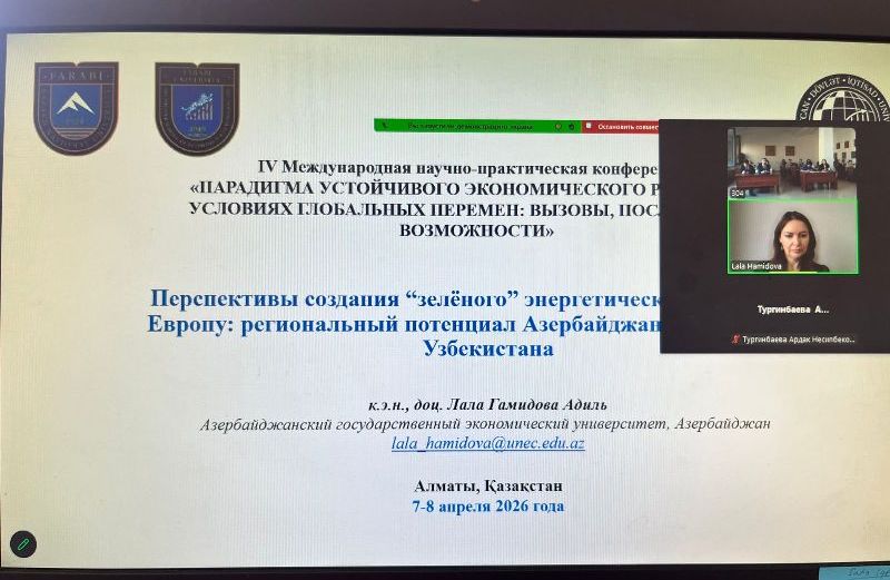 7-8 aprel 2026-cı il tarixlərində Əl-Fərabi adına Qazax Milli Universitetində "Qlobal Dəyişikliklər Kontekstində Davamlı İqtisadi İnkişaf Paradiqması: Çətinliklər, Nəticələr və İmkanlar" mövzusunda 4-cü Beynəlxalq Elmi və Praktiki Konfrans keçirilib.