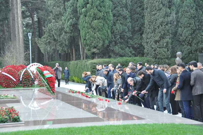 UNEC kollektivi Fəxri xiyabanda Ulu Öndər Heydər Əliyevin məzarını ziyarət edib