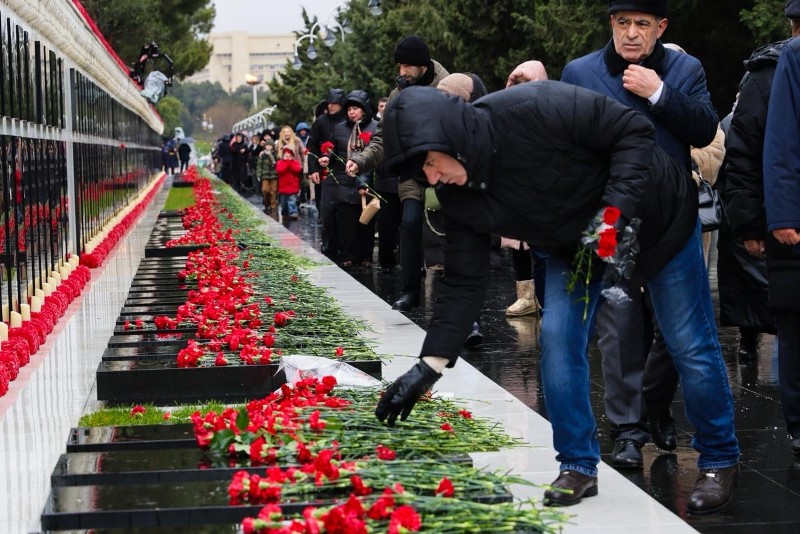 Azərbaycanın müstəqilliyi və ərazi bütövlüyü uğrunda canlarından keçmiş şəhidlərin əziz xatirəsi ehtiramla yad edilib, məzarları üzərinə qərənfillər düzülüb.