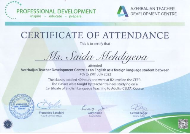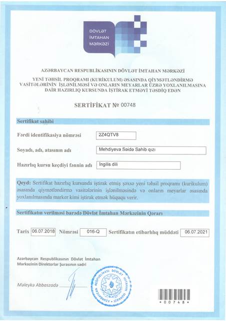 “Xarici dillərin tədrisi mərkəzi”nin baş müəllimi