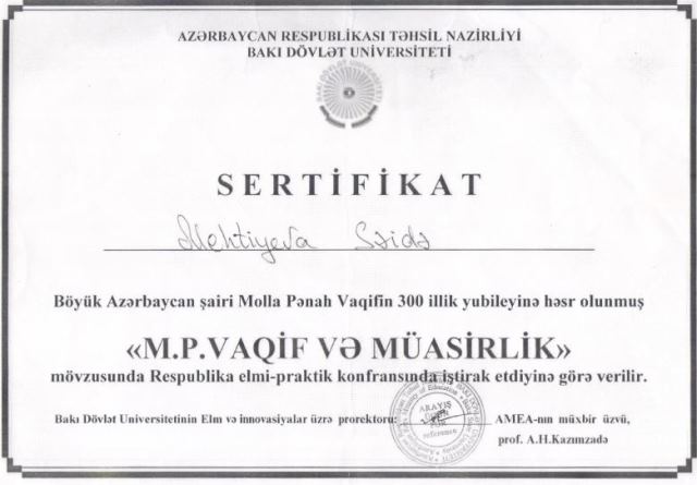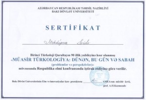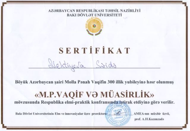 20-dən çox məqalə, 4 Beynəlxalq konfransda məruzələri, 12 sertifikatı və aşağıdakı tədris materiallarının müəlliflərindən biridir.