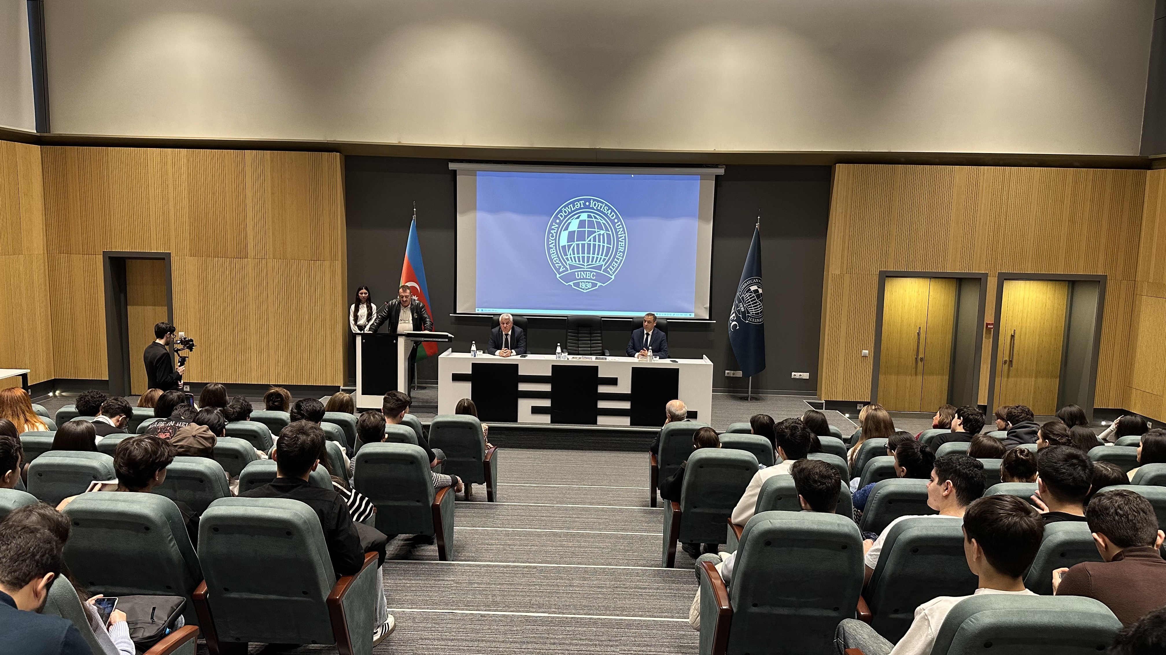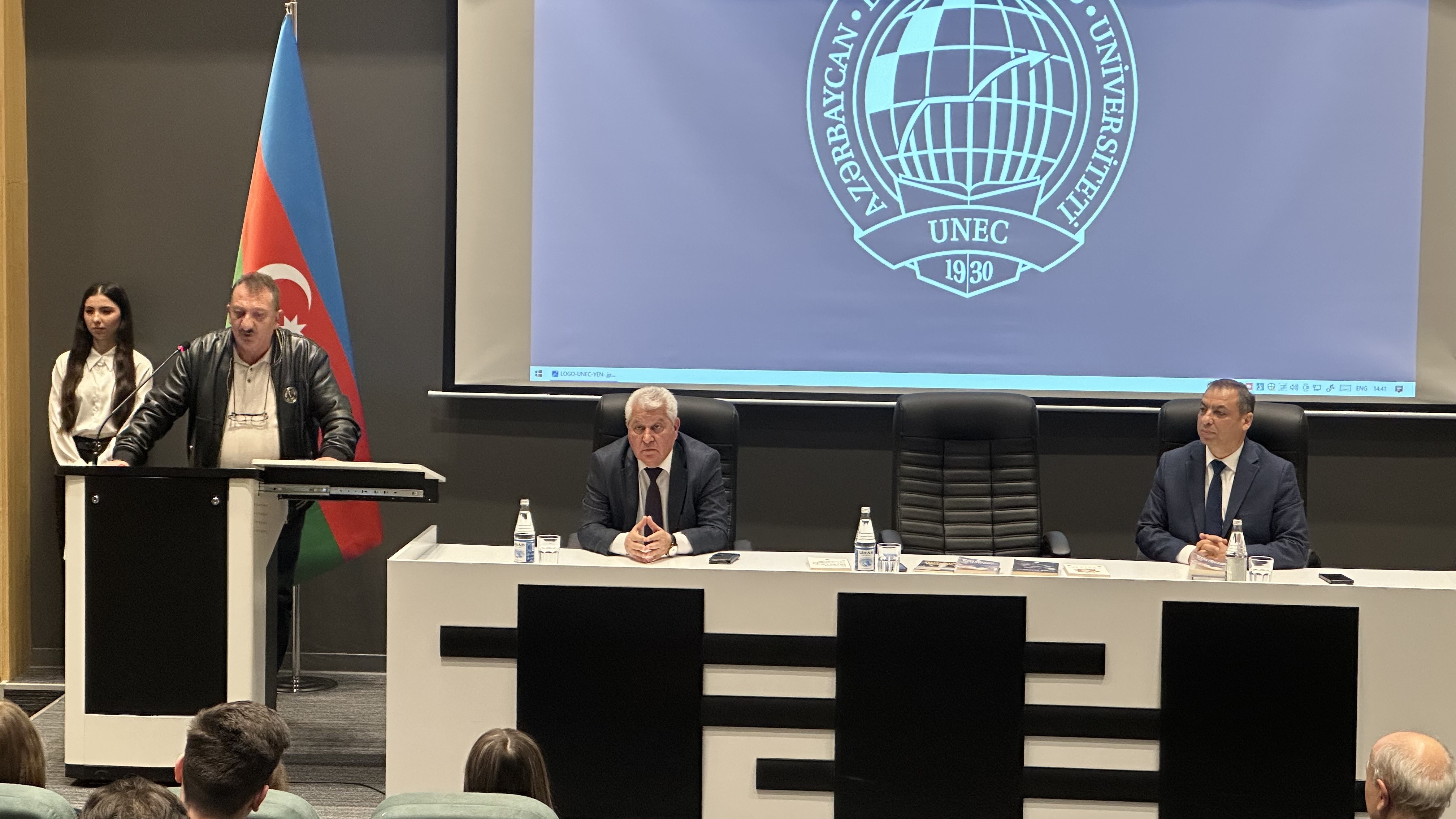 A meeting with Academician Mukhtar Imanov and renowned poet Rustam Behrudi was held with students at the Azerbaijan State University of Economics (UNEC).