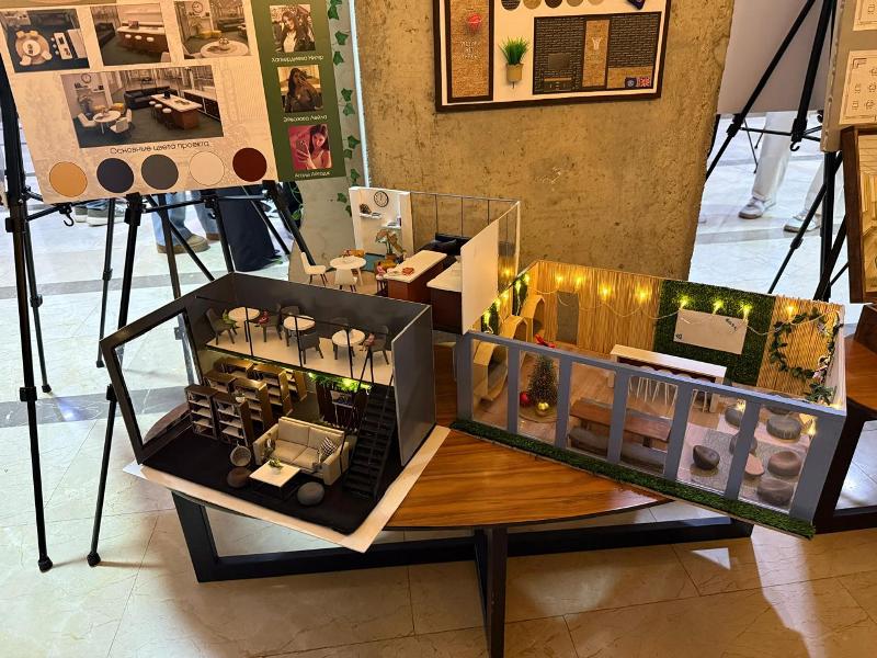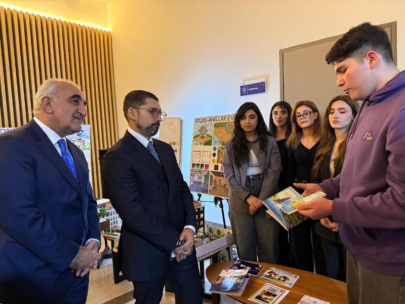 Participants first viewed an extensive exhibition featuring students’ creative works. The exhibition showcased social projects addressing the needs of elderly individuals and persons with disabilities, graphic design works, rebranding and fashion design samples, environmental protection initiatives, as well as socially oriented projects developed for the reconstruction of Karabakh. Particular interest was generated by student projects prepared for the restoration of Karabakh, including models of a nursing home, an inclusive residential space, an innovation library, and other initiatives.