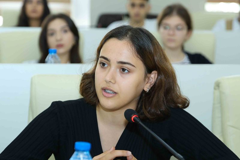 Встреча продолжилась сессией вопросов и ответов на такие темы, как устойчивое развитие, образование, инновации в сельском хозяйстве, повышение интереса молодежи к этой сфере, ответственность международных организаций и государств в реализации целей устойчивого развития, влияние таких проблем, как климатический кризис и экономическая нестабильность на регион и Азербайджан, а также отношение к глобальным вызовам.