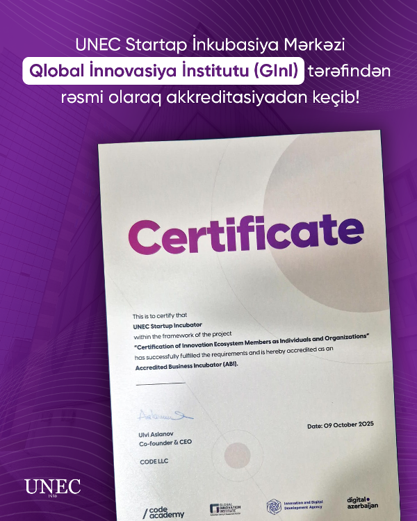 Центр инкубации стартапов UNEC получил аккредитацию Глобального института инноваций